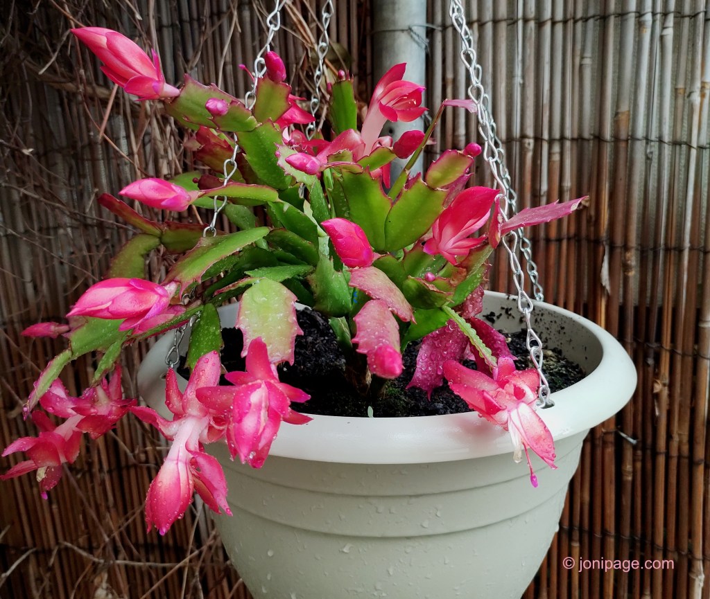 The pretty zygocactus in the picture above was a $3 pot on the bargain table. When I got it home, I realised it had 3 little plants in it! I potted them all up, they grew beautifully, and now they live happily in my shade-house. What a magnificent display they give me every year!